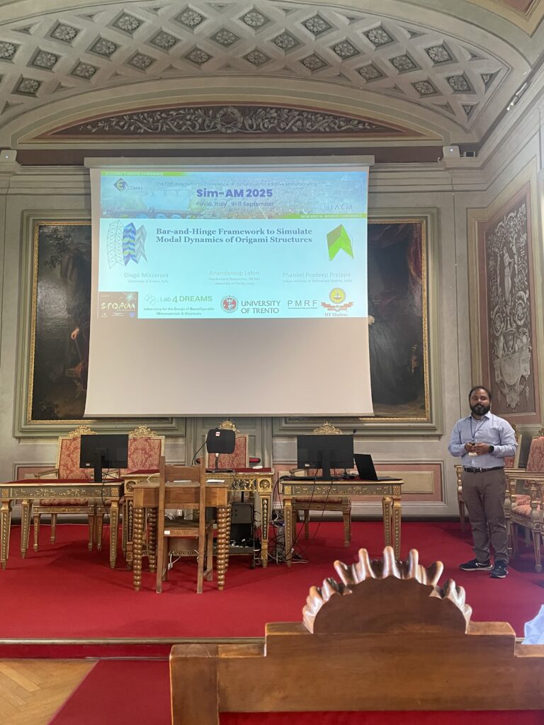 Lahiri A. (2025) ‘Bar-and-Hinge Framework for Modal Analysis of Origami Structures.’ The Fifth International Conference on Simulation for Additive Manufacturing, Pavia (Italy), September 9-11.