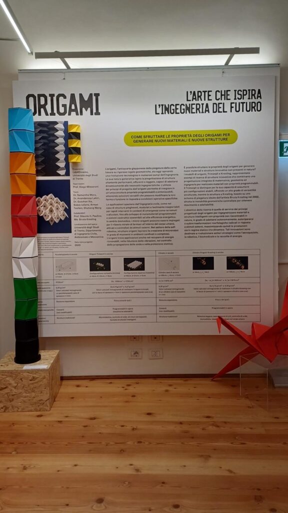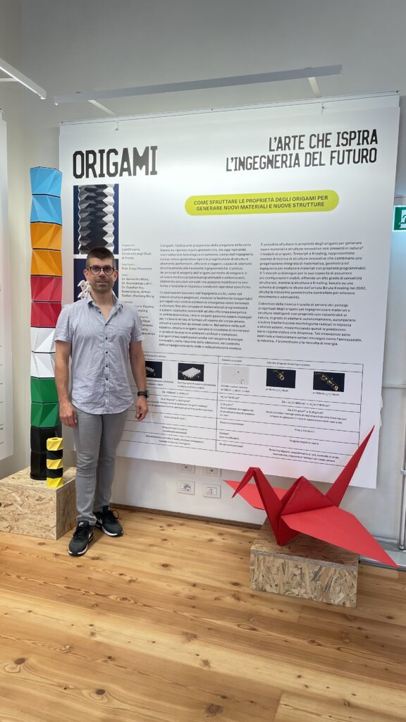 Misseroni D., Lahiri A., Xia G., Juliano S., Toofani A., and Wang S. (2025) ‘ORIGAMI: L’arte che ispira l’ingegneria del futuro’ Exhibit at the exhibition “Opere d’Ingegno” promoted by the “Cultural Committee” of the Order of Engineers of Trento at “Roccabruna Palace,” Trento (Italy), June 24 – July 30.